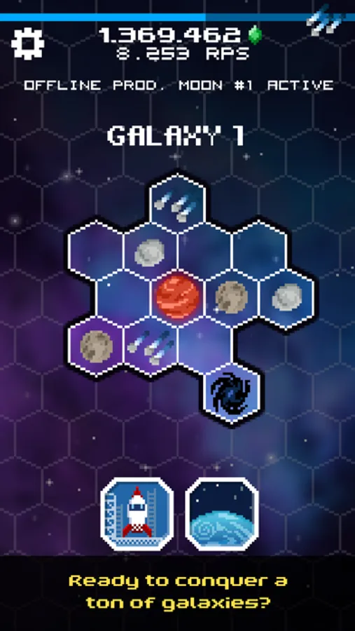 TAP GALAXY is a space mining incremental clicker game where you mine exotic planets, moons, asteroids, and comets for resources that help you colonize galaxies and build your Galactic Empire!