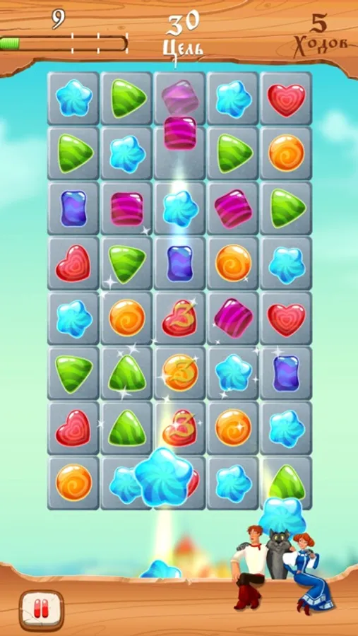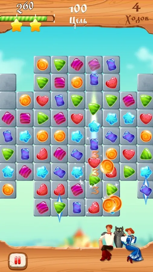 Combine sugar candy and diamonds three in a row or more. Crash the rows and columns of candy and diamonds and you get points and wonderful bonuses. For candy and diamonds in various combinations Russian Prince John and the Grey Wolf get a unique treasure, which is much faster and more fun to pass game levels.