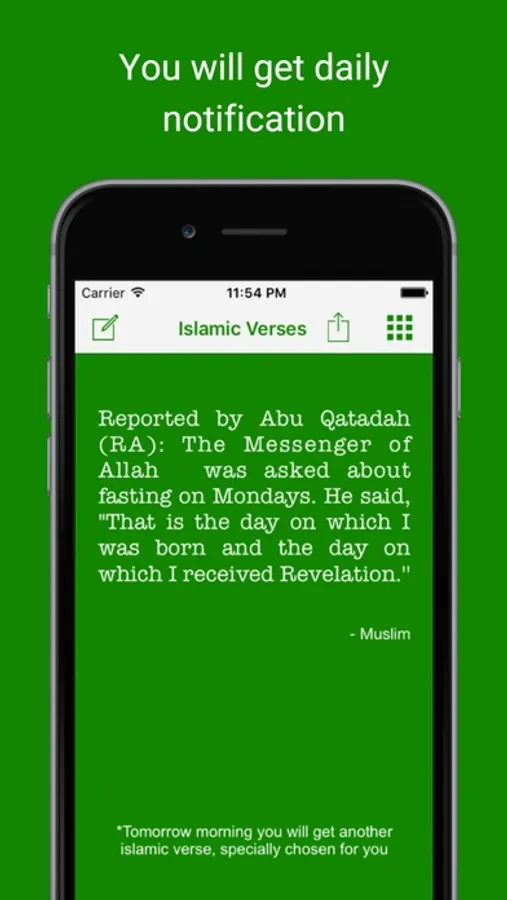 Daily Quran Verses app contains Quran quotes ( Qur'an القرآن الكريم), Islamic quotes and sayings, Islamic hadiths, Islamic hadees, Islamic message, Islamic stories etc which will help you to know more about Islam (الإسلام). This Islamic messages app is not just another Islamic tool for listing quotes from The Quran ( al Quran). So we don't list Quran quote to read all at a time. This Islamic insperational qoutes App will show one new Islamic motivation quote each day. You will be notified in the morning with the inspirational quote or Quran stories. Start your day with an Inspiring Quran verse! Daily Quran verses (DQV ) and devotions are the best way to start a day. This morning Islamic verses app can be used for Quran quiz, Islamic moral stories, Islamic quiz game, Quran learning, Allah sms, Islamic stories for muslims and much more. This Islamic launcher app can also be used as Quran reading app, Islamic dream interpretation, Islamic sms english, Quran cure etc. This Quran english version of the app contain Quran by sudais, Quran by mishary al afasy, Islamic stories in english, Islamic stories for kids & islamic quiz free. You can use this app in all Islamic calendar of the Islamic year through all Islamic months. Because every day morning you will get a new al'Quran in english translation quotes. This Quran digital app can be used as Quran online and Quran offline free download app. Before developing this Allah launcher app we conducted a survey and many of the people ask us to develop islamski prirucnik, islamicaster, islamic hijri, islamic hadith, islamic jurisprudence, islamic kalmas or Quran dan terjemah. Some ask us to develop Quran hafalan, Quran karim, Quran othmani, Quran oromo, Quran qaida or Quran duas. This survey really help us in devloping this Quran house app with Quran with english translation (from Quran full book).