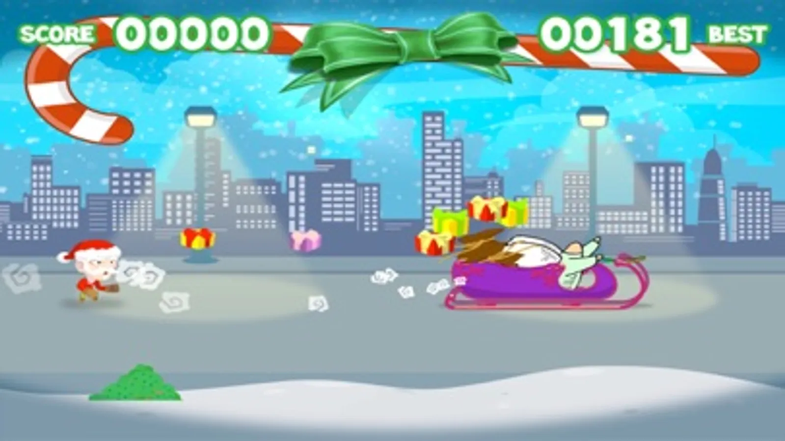 Santa Clause lost all the christmas gifts and have to collect them all. But he's in luck - the angels gift bag was to full and a lot of the gifts fall on the street or are in the air. Collect all the gifts to make the kids around the world happy.