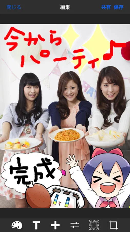 ・撮影後の写真へ文字やイラストを追加できる、お絵かき機能