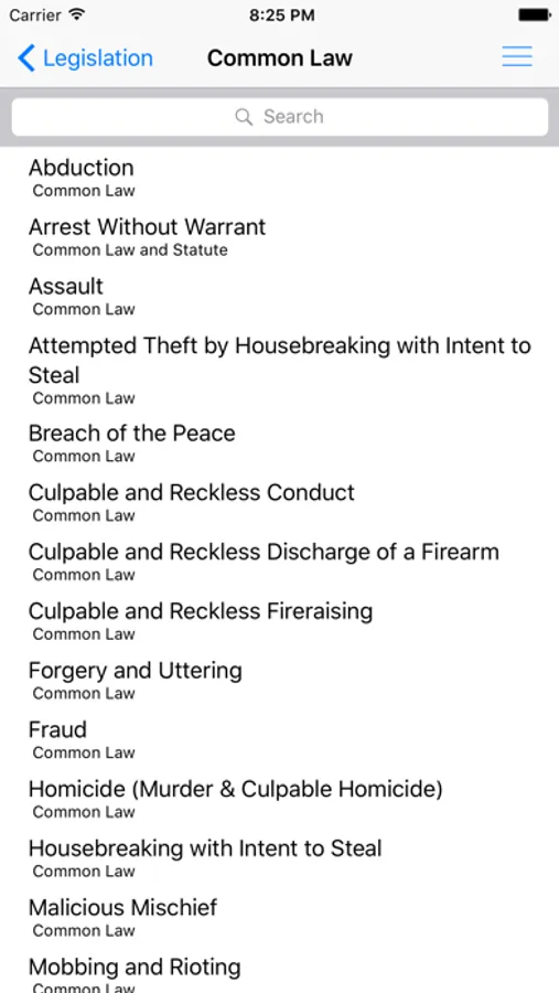 *Check a large database of over 350 entries of current legislation offline at any time.