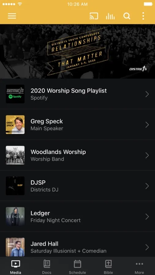 The Districts Youth Conference App was created with the Subsplash App Platform.