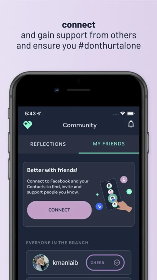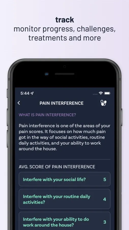 Track your pain. Create your personalized journey by updating your branch profile with your specific pain type or condition. You can record changes to your pain level, medication usage, treatments, mood, sleep patterns, accomplishments, challenges, goals, and more. This app also integrates with Apple HealthKit, so you can seamlessly gain insights on how your pain impacts your movement and heart rate.