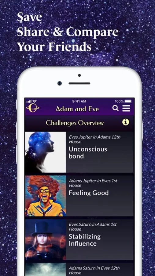 Our Synastry Reports align your personal Birth Chart with your lover & friends. See how your stars align & what planets present opportunities or challenges in your current relationships. Plus, we make it easy to share your Synastry with friends.