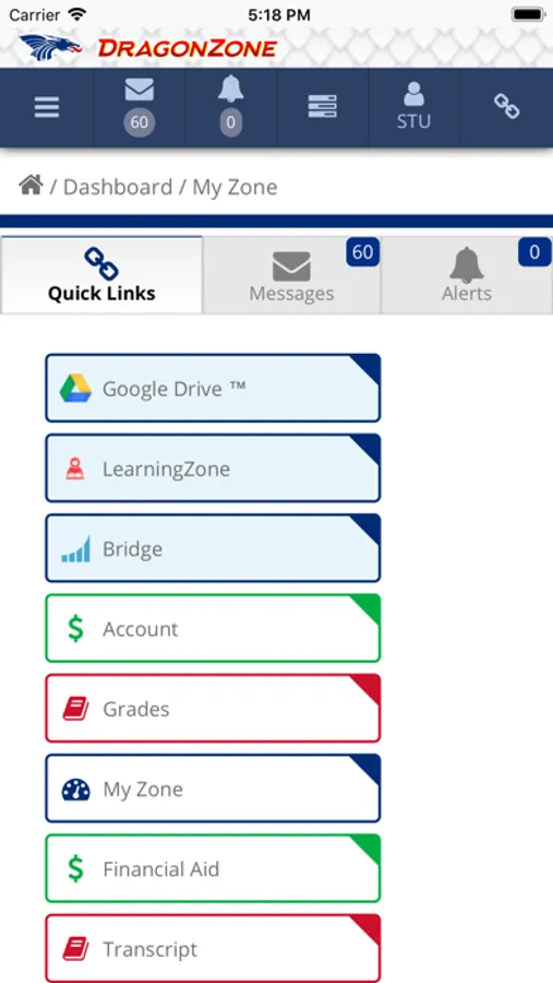 Hutchinson Community College's new DragonZone app helps keep you connected to HCC. You will have access to all your messages and notifications, in addition to the other great features available in the DragonZone student portal including:
