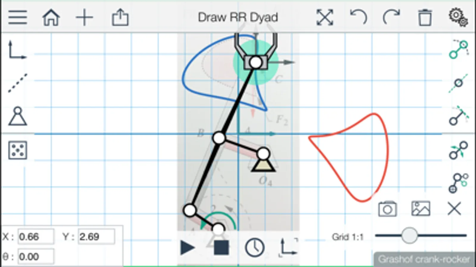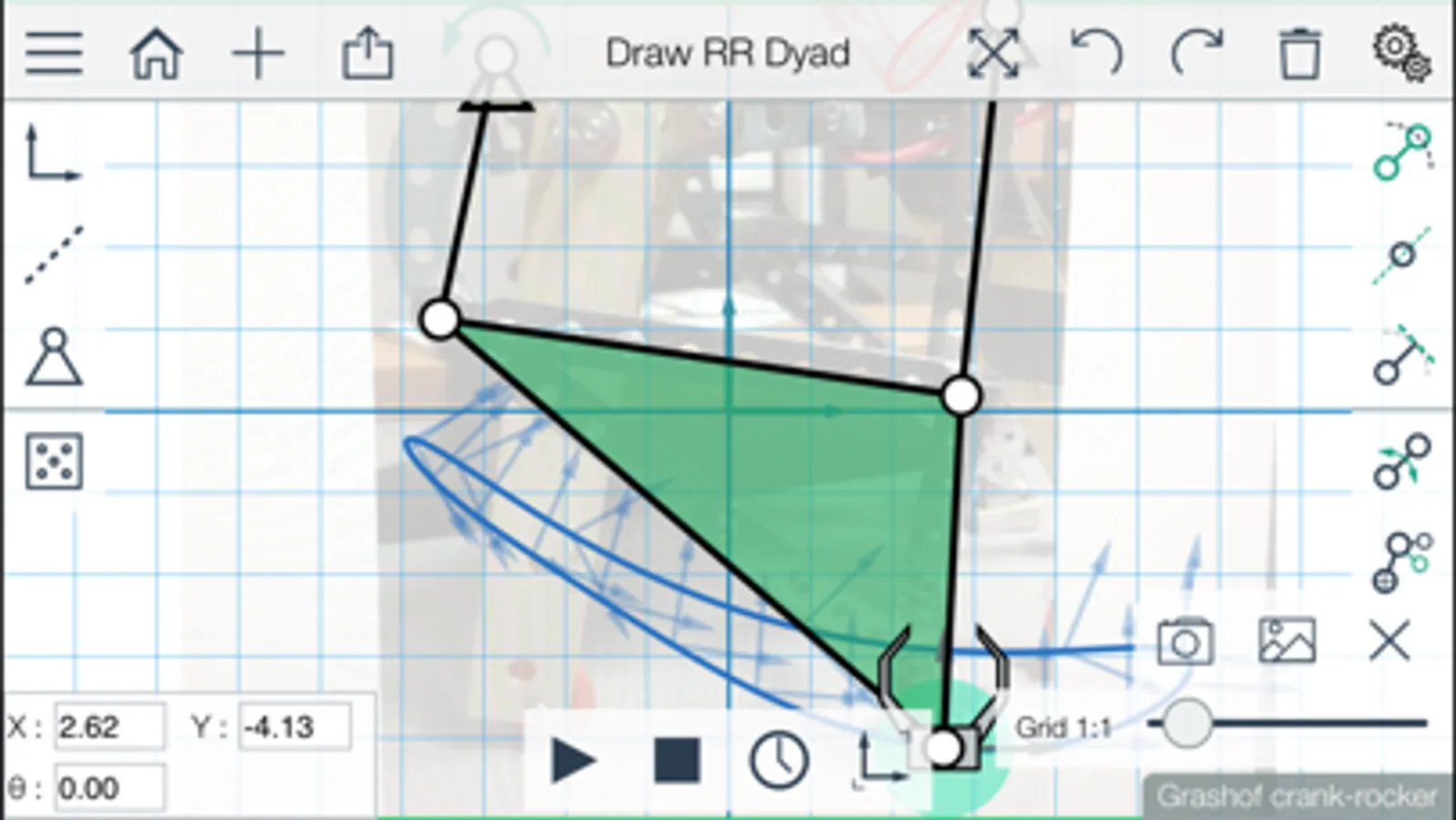 - Incorporates fixed- and moving-pivot and line constraints for 3 and 4 position problems.