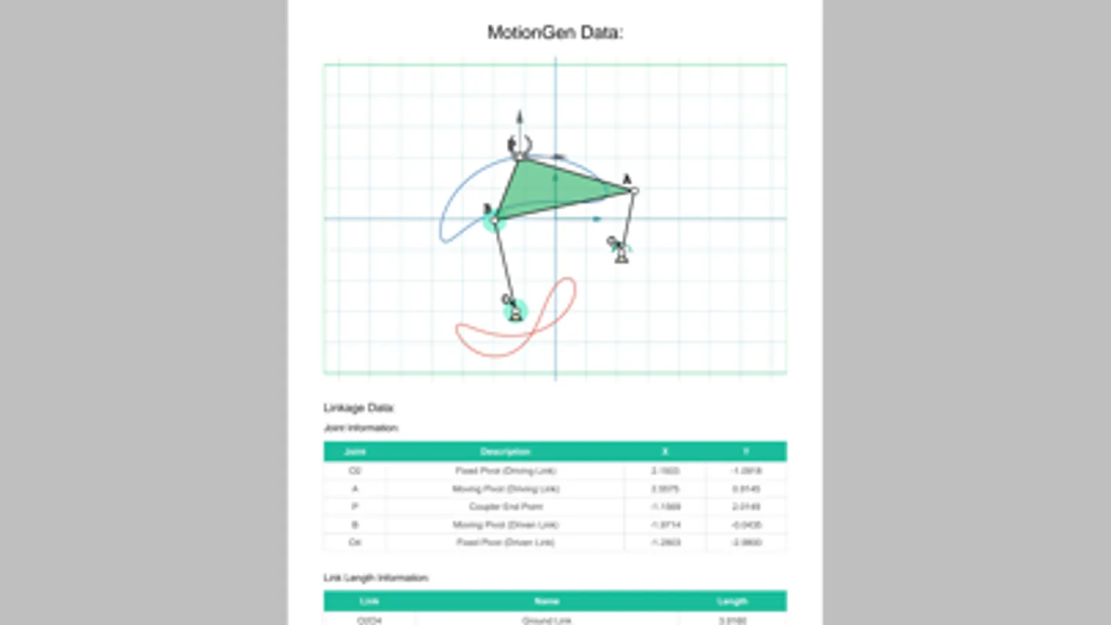- Use MotionGen to design and simulate single degree of freedom linkages for your robot or machine.