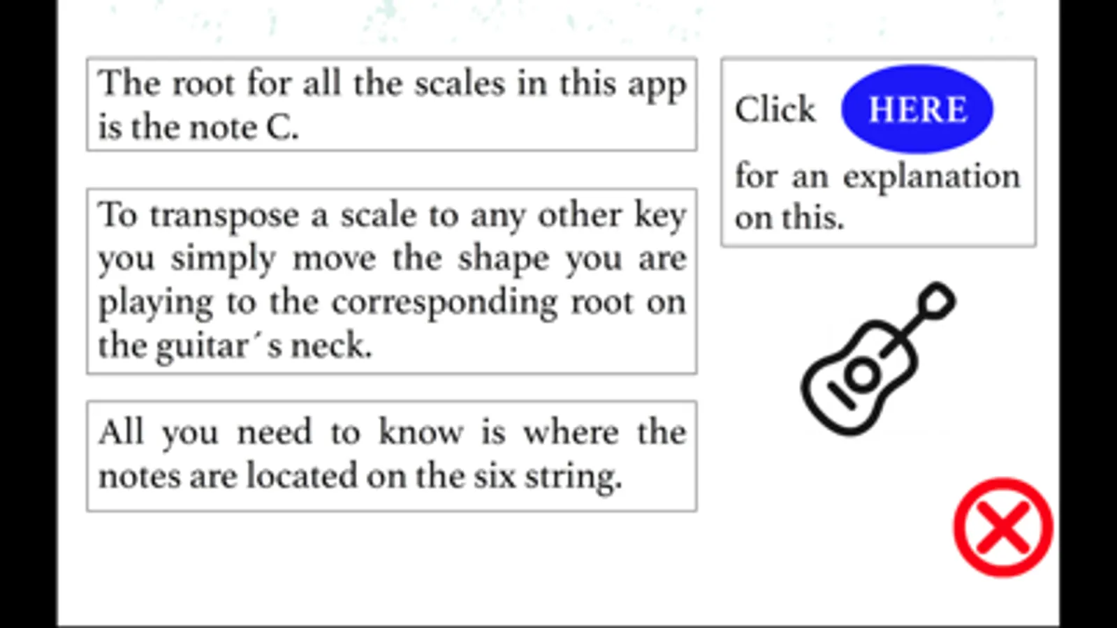 - It shows the notes of each scale on a virtual Guitar so you can play it.