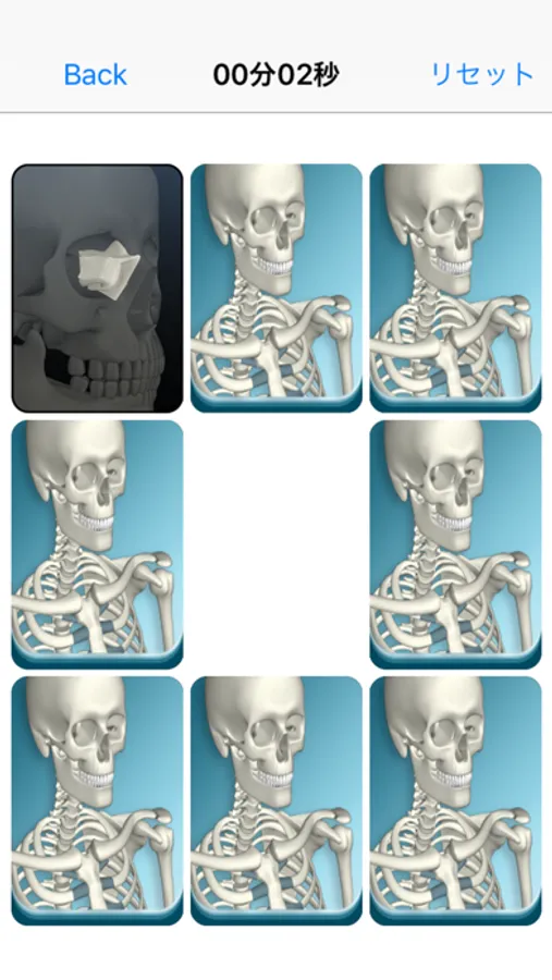 8枚、12枚、24枚の3つのモードから骨の絵合わせ(神経衰弱)で骨を暗記しよう!