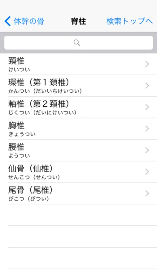 「頭部の骨、体幹の骨、上肢の骨、下肢の骨」の分類一覧から骨を探して見る。検索機能付き。