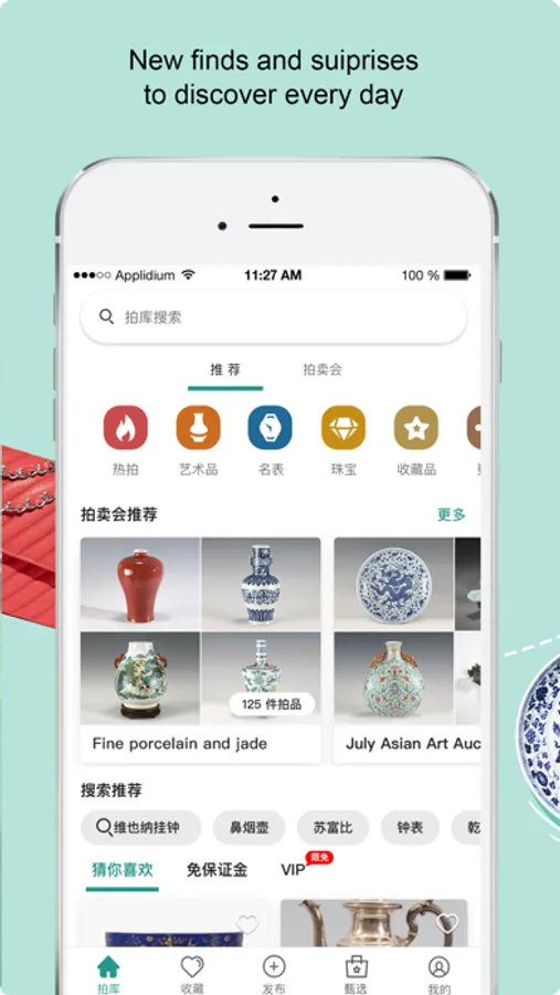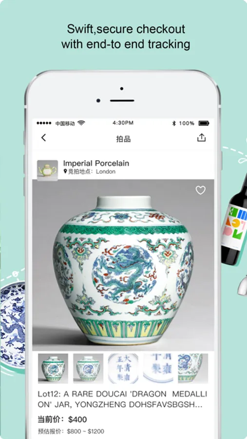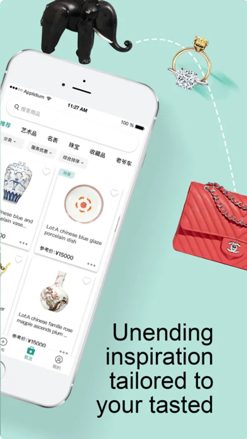 1、海量拍品:优选上千家海外拍行,珠宝、名表、奢饰品手袋、艺术品、字画、古玩应有 尽有,全民体验线上直拍乐趣。