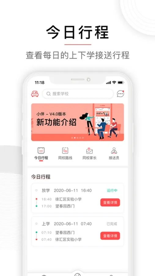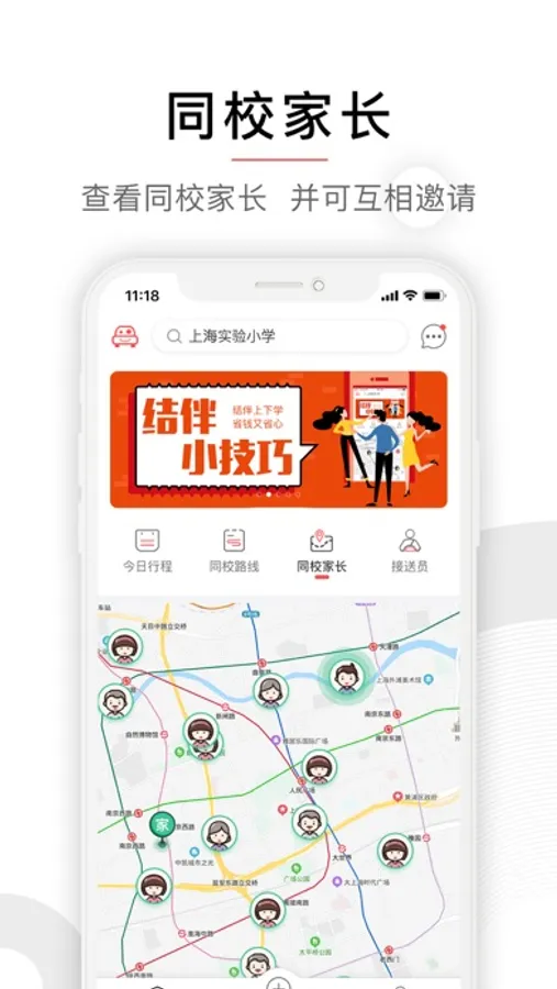 1. 家长可以通过“小伴”寻找到放心靠谱的固定接送员,长期接送孩子上学或提供其它儿童陪伴服务。也可通过平台找到同校路线的家长,分摊接送员费用。