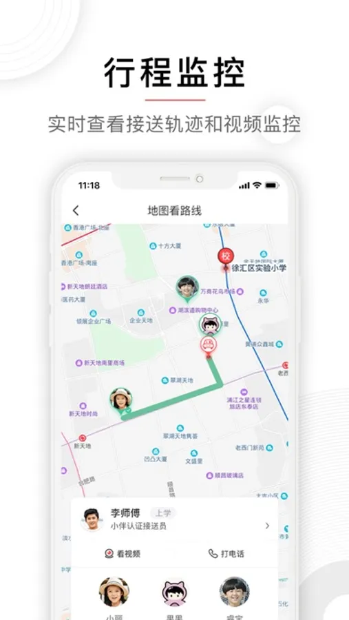 2. 小伴接送平台利用基于地理位置的LBS,音频/视频监控和信息分享技术,让家长能通过小伴App实时查看到儿童的位置及音频/视频。