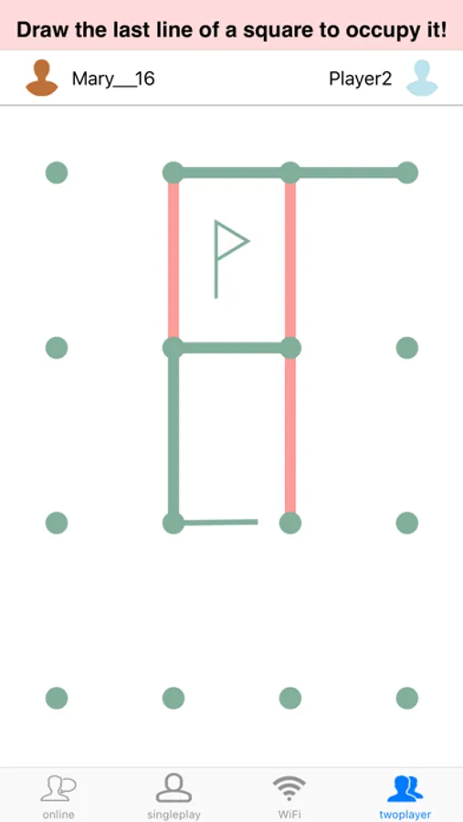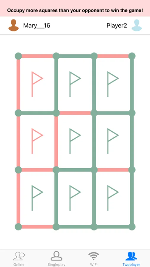 Players take turns to draw lines and who draws the last line of a square will occupy it.