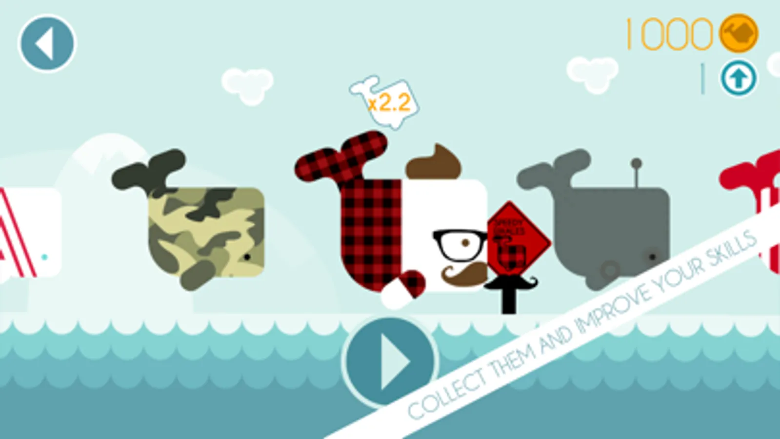 Collect all the different whales, level up and use their skills to get more points!