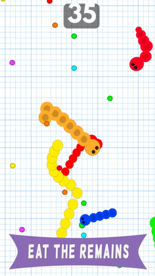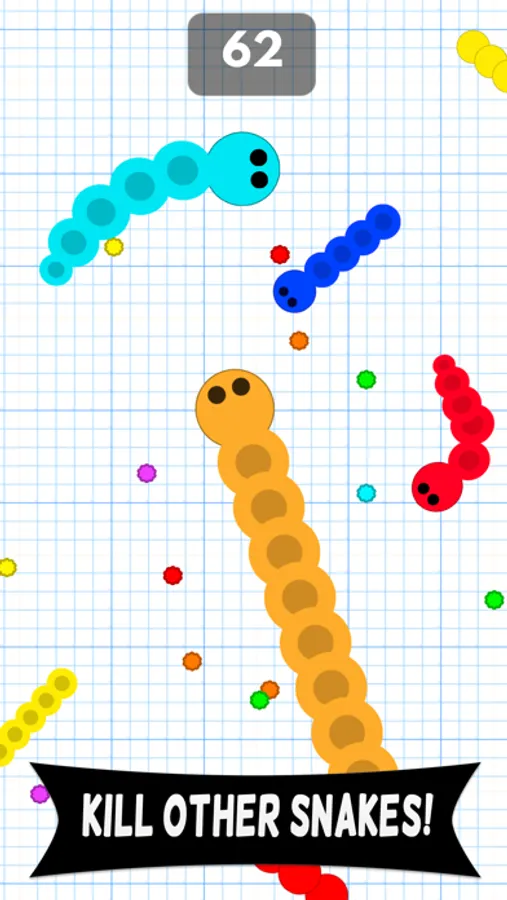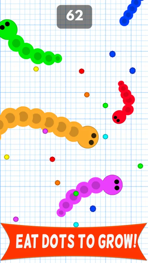 Eating dots will make you longer and bigger. Avoid to hit others snakes with your head. Try to let the enemies run into your tail to kill them - size doesn't matter. Eating their remains gives you a growing boost and higher scores.
