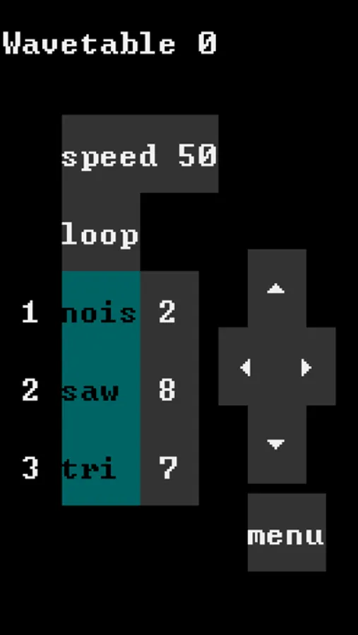 - 6 mono channels, 16 instruments, 1-256 step sequencer, 64 patterns, tempo sequencer, wavetable editor, instrument editor.