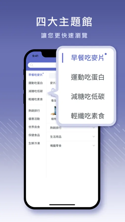 早餐吃麥片、運動吃蛋白、國內外嚴選生活用品三館合一,滿足您對健康時尚生活的要求。