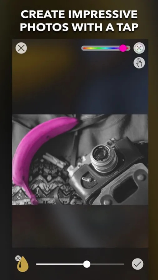 It's super quick and super easy. No finger painting is needed! All you have to do is tap on the color you want to highlight! Depello makes it possible to create stunning and effectful grayscale images with just a tap. Depello is a photo editing tool which converts your images and photos into black and white but preserves and highlights a color of your choice using state of the art computer vision algorithms.