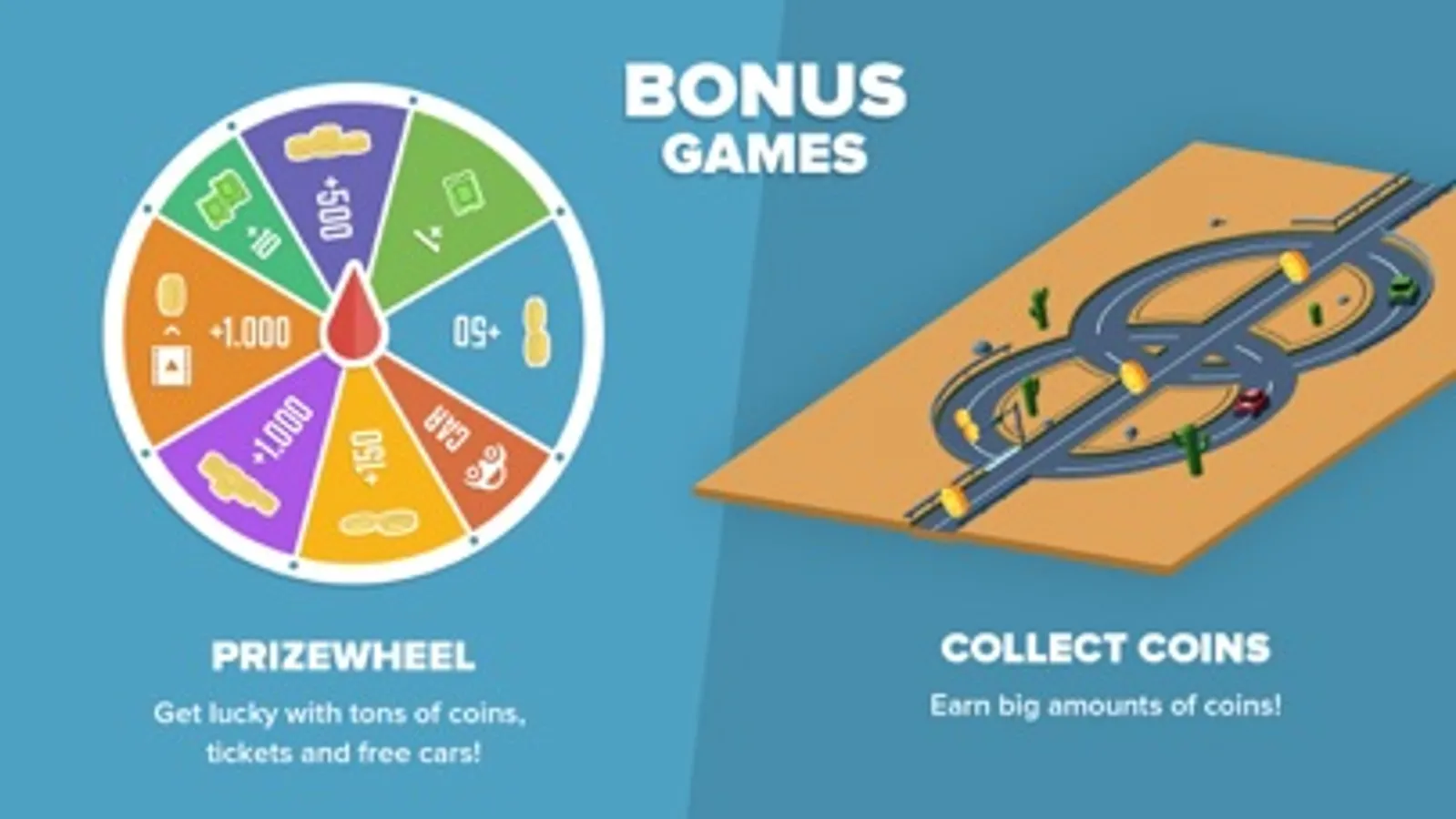 Earn more coins with every loop, unlock cars, expand your collection and see what suits you best.