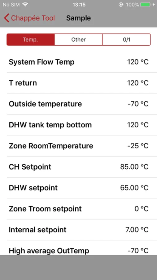 Once the Service Tool App has started up, it will automatically identify the type of unit it is connected to and provide an immediate overview of the unit and all the relevant information.