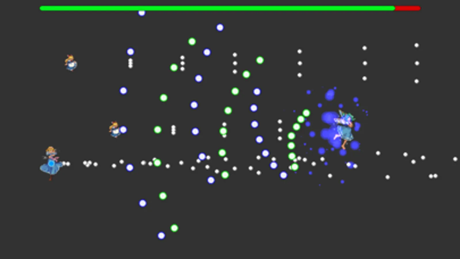 自機の真ん中の青い丸が当たり判定部分です。ここが被弾しない限りセーフです。