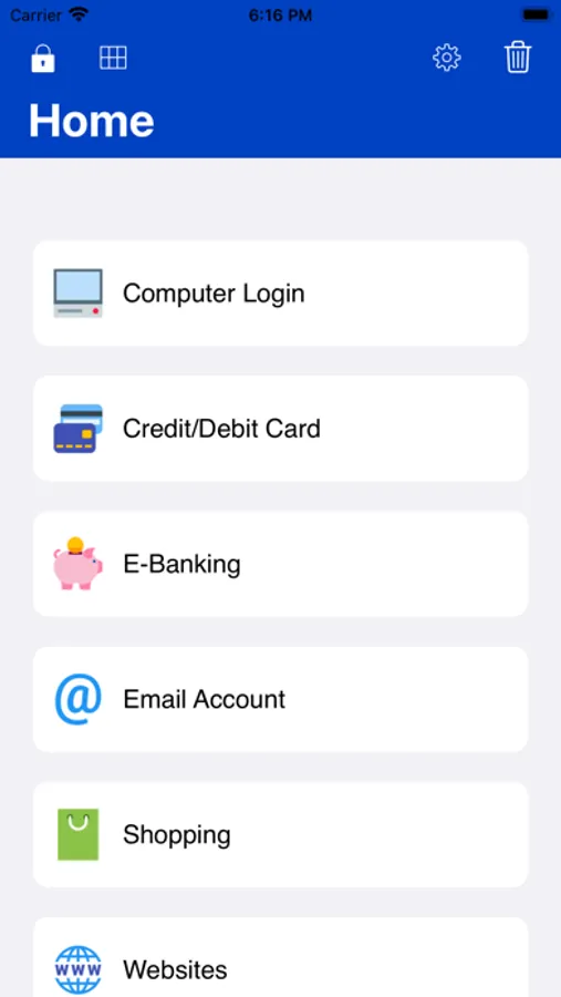 > Categorized your passwords into Computer Login, Credit/Debit Card, Banking, Shopping etc