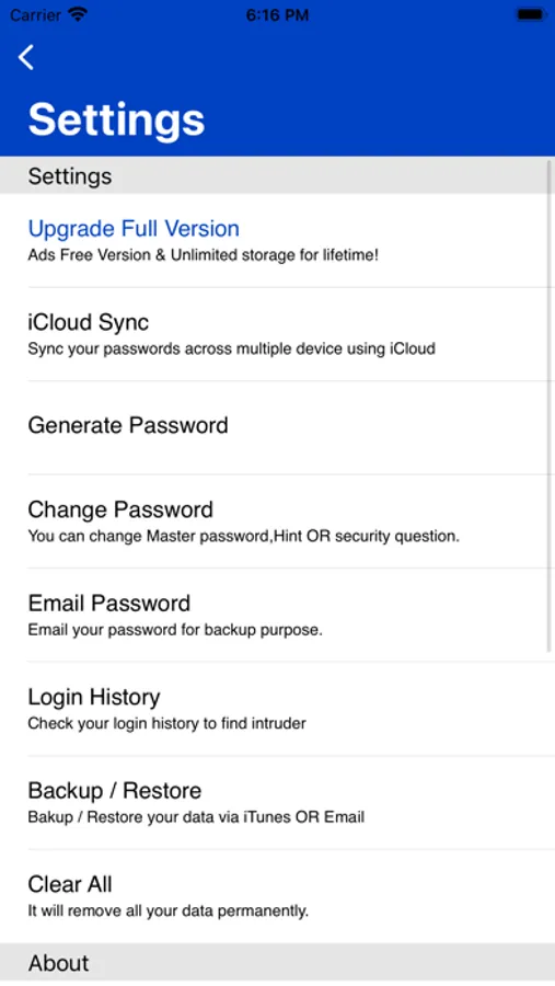 Still struggling to remember multiple passwords? Still suffering from forgetting passwords? Then here is the solution. The design and concept keep your password safely and easy to accessible. With tiny single password you can manage all your passwords in one place SECURE and SAFE !!! Key features of this app are: It uses 256 AES encryption to store data AND it uses local storage of device so, no worry about hacking and internet security.
