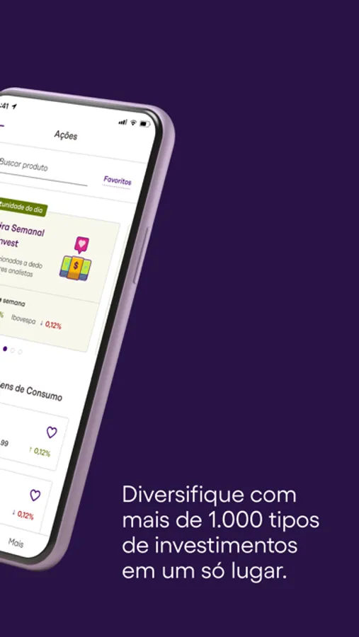 No app, você investe de forma descomplicada. São mais de 1.000 tipos de investimentos disponíveis para você diversificar e acompanhar seu dinheiro rendendo.