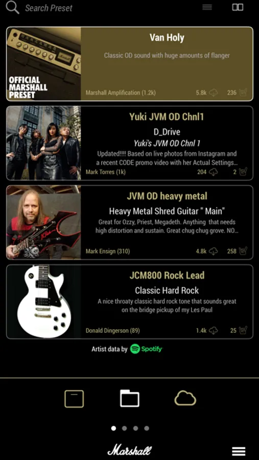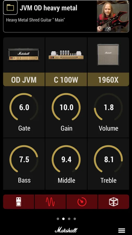 Connect using Bluetooth LE for real-time control of your amplifier settings. Save all of your presets to the Marshall Cloud for access on any of your devices and share them with friends or publish them to the Marshall CODE community.