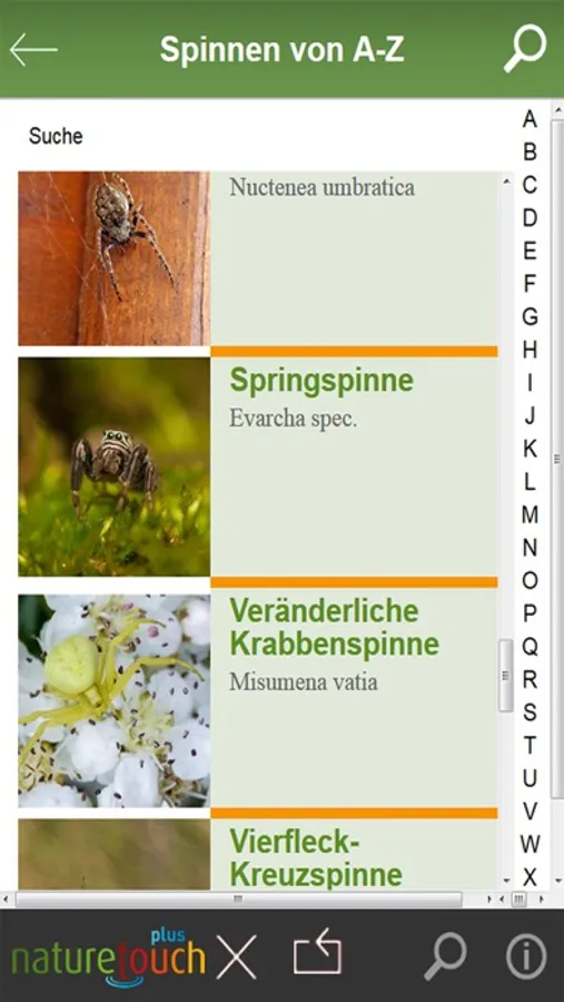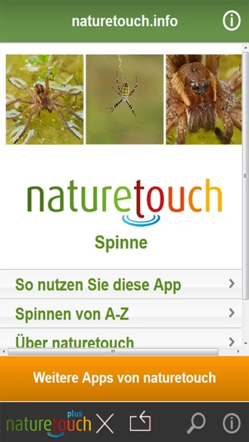 Spinnen bestimmen, die wichtigen Spinnen Deutschlands erkennen und bestimmen: Garten-Kreuzspinne, Wolfspinnen, Kugelspinnen und andere. Mit ausführlichen Porträts und Fotos.Tierführer von Naturetouch.