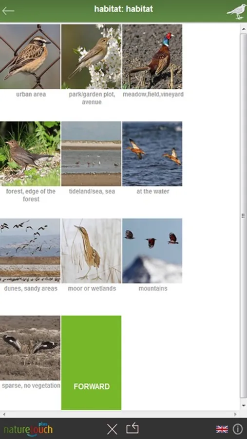 Identify 500 birds and 934 plumage. In the forest, in meadows, on the beach, and on mountains. Birg guide from Naturetouch. Identify a bird with a few clicks - easy for everyone. Ideal for on the road, alone, for a couple or with the family.