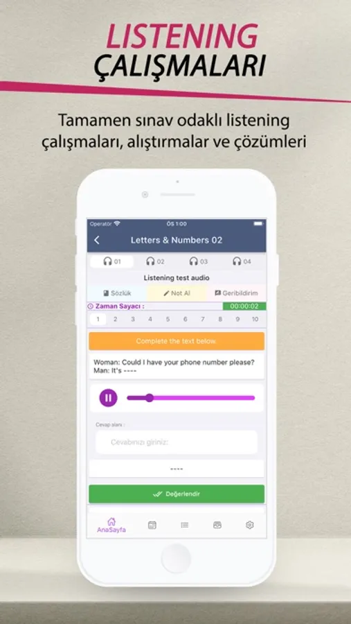 Tüm listening parçalarına 7/24 online olarak ulaşma imkanı