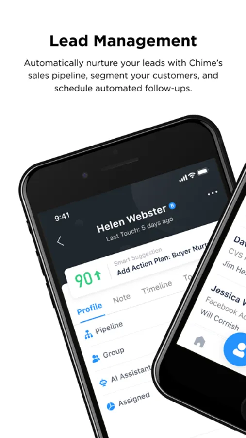 Chime CRM is a complete lead nurturing, productivity improving, marketing automation solution suite. Easily engage leads, track lead preferences, and automate your follow up, so leads always feel taken care of.