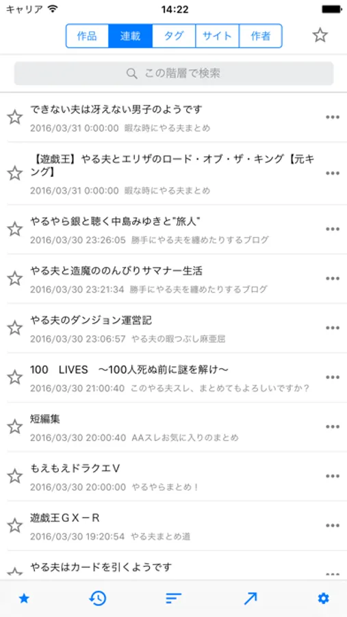 作品、連載、検索結果それぞれ登録しておくことが可能です。連載と検索結果については自動で更新確認する機能があります。新作をチェックするのが簡単です。