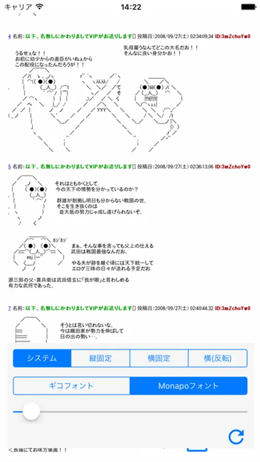 iOS向けに最適化されていないまとめサイトでも、アスキアートが崩れないようになっています。