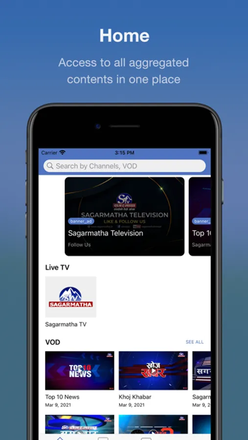 Sagarmatha Television app for iOS brings all STV has to offer in users' iPhone and iPad devices. Sagarmatha Television has following features for users service: