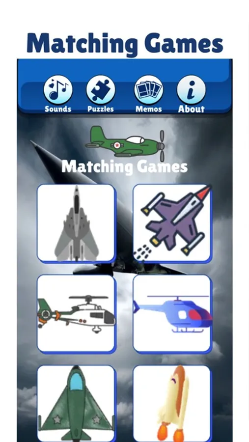 Jet Fighter Games For Kids: This exciting activity app is filled with engaging jet flying Sounds your little pilot can explore in the air...but the Airplane! Air Fighter Games doesn't end there. The activity app also comes with an aeroplane matching game , and many beautiful, real jets puzzle games.