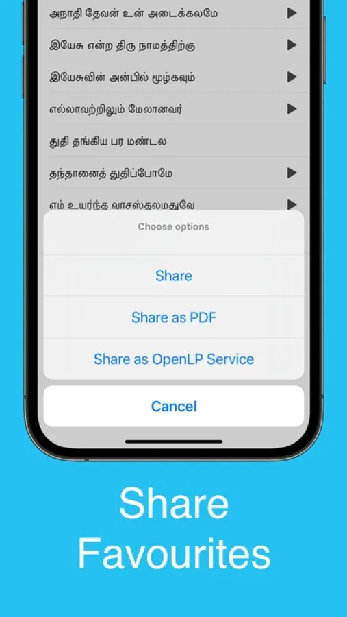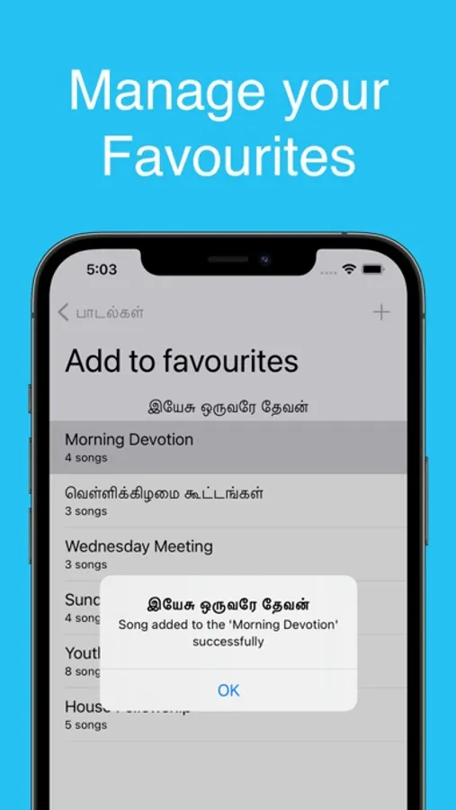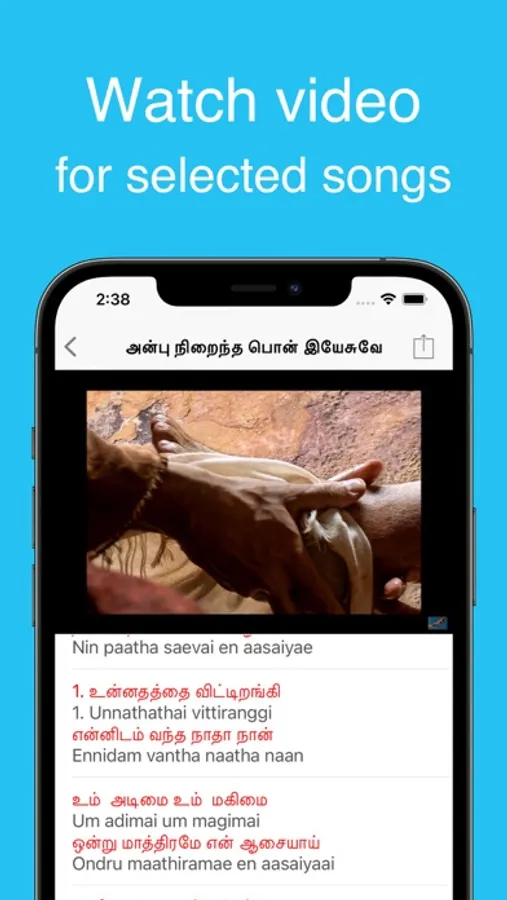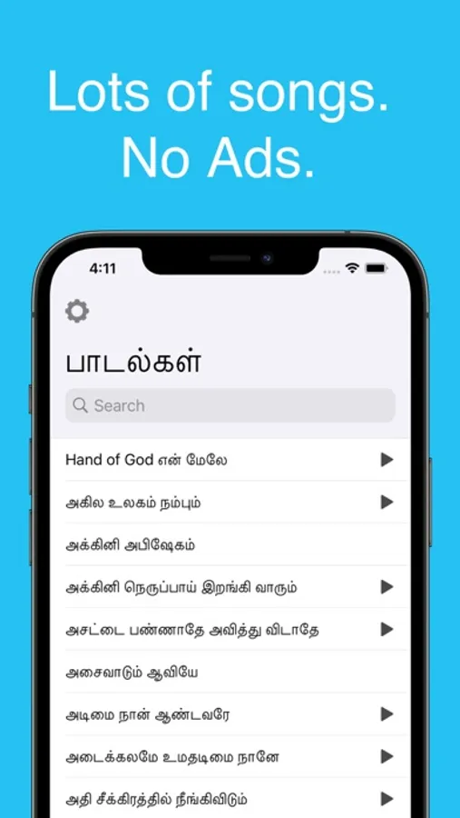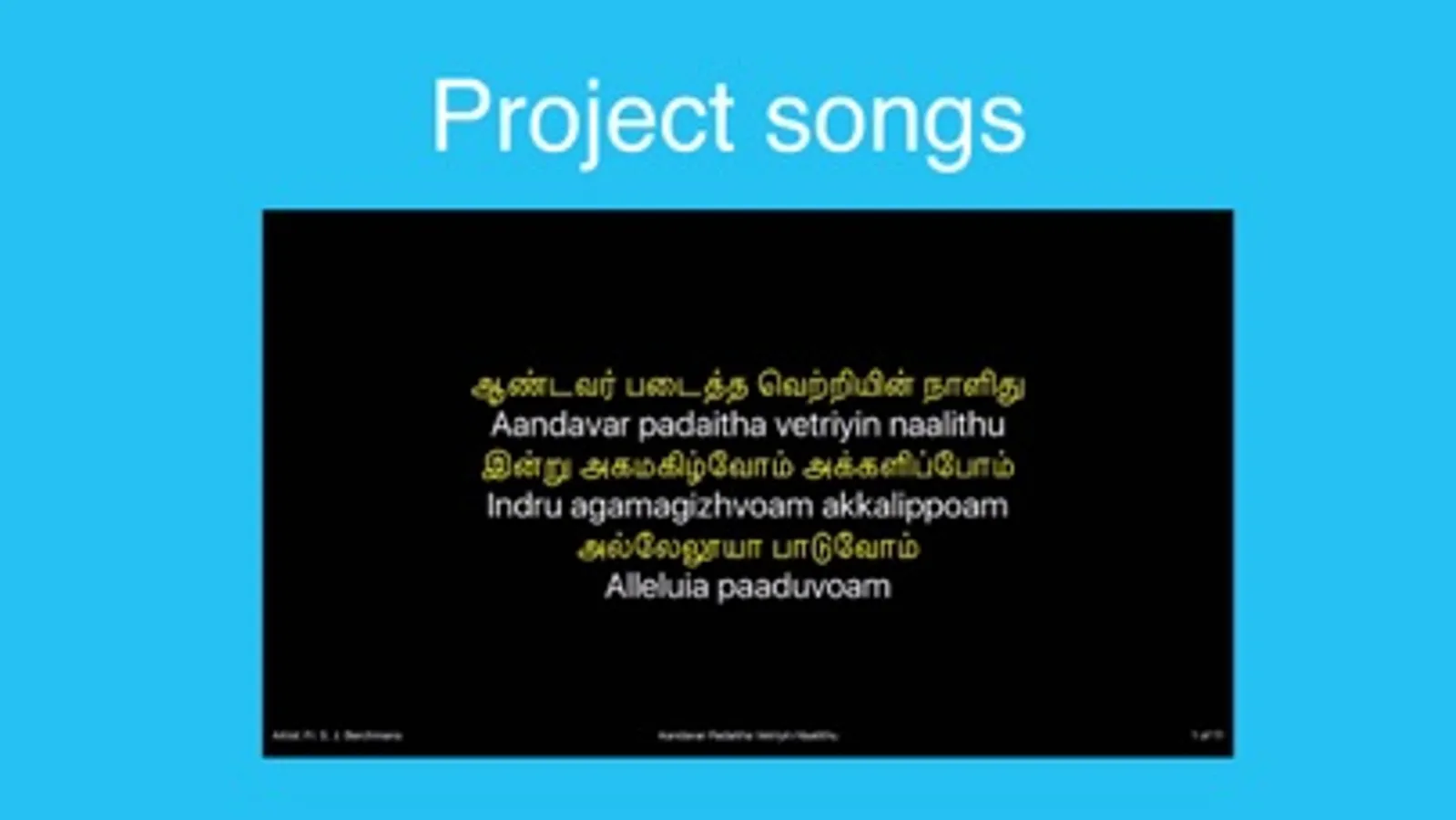 Many Tamil congregations also sing English songs. Worship Songs provides many popular English songs as well, so you need not look for another app.
