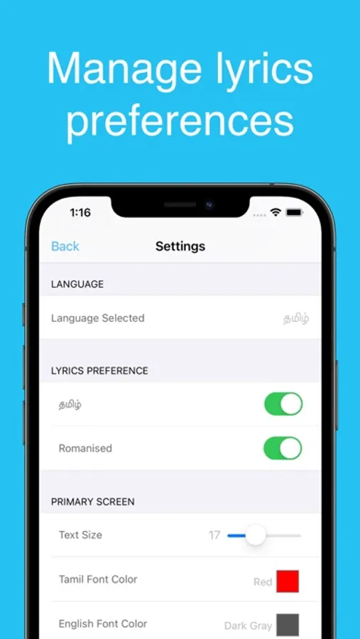 Worship Songs was initially developed as we couldn't find an app with both Tamil and Transliterated (Romanised) text.