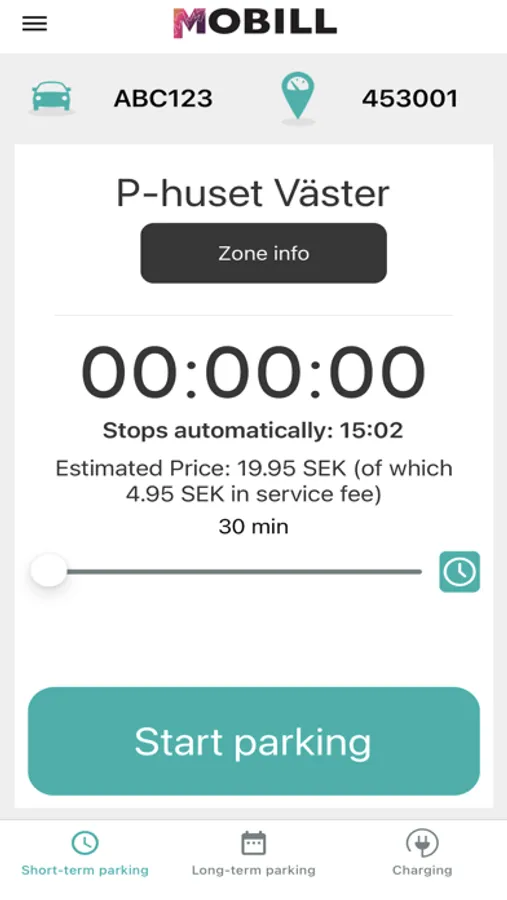 You can save and choose from several registration numbers. The app helps you find the right parking zone and remembers the last three zones. You can see pricing rules before and during the parking period.