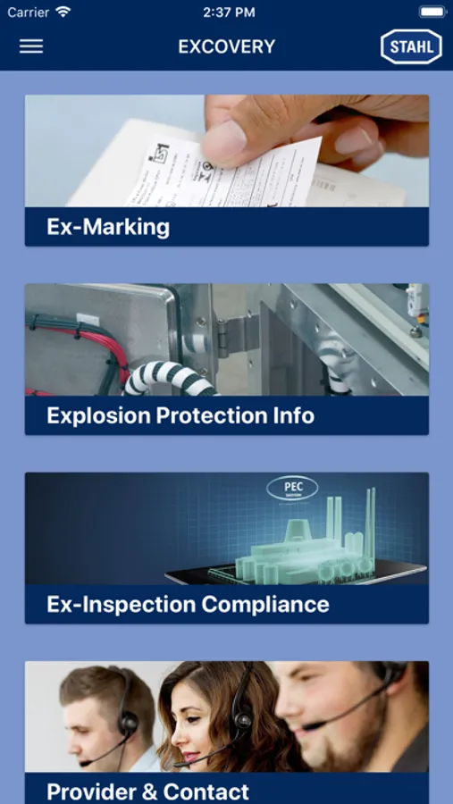 EXCOVERY can be used by operaters, planners, installers or engineers that work with electrical apparatus in hazardous environments. Due to legal regulations, those devices are labelled with the marking according to IEC 60079-0 which indicates the operation conditions with only a few symbols. By entering the marking, EXCOVERY displays the detailed description. Futhermore, EXCOVERY keeps the most important technical basics of explosion protection (also ATEX) on your hand.