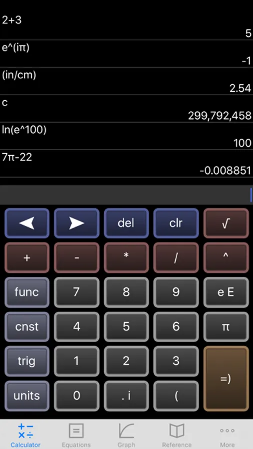 10) Constants for scientific calculations -- speed of light, strength of gravity at Earth's surface, etc. etc. etc. Tapping on a constant will insert it into your calculation -- i.e, you don't have to key in the value. Again, great for physics problem sets!