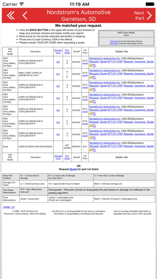 • View information about each part we have available