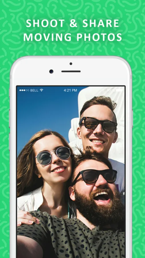 Take a moving photo of yourself, upload anywhere. Just click download.