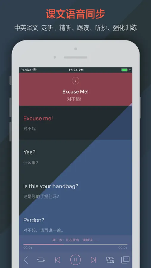 专注于新概念内容:课文泛听精听,听读写,单词学习复习检验。