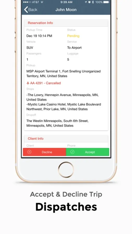 - Pre-formatted SMS messages for easy communication with clients. (eg. "Your driver has arrived!")