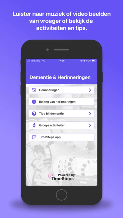 In deze app zijn een aantal thema's uitgewerkt die voor de meeste personen positieve herinneringen ophalen.