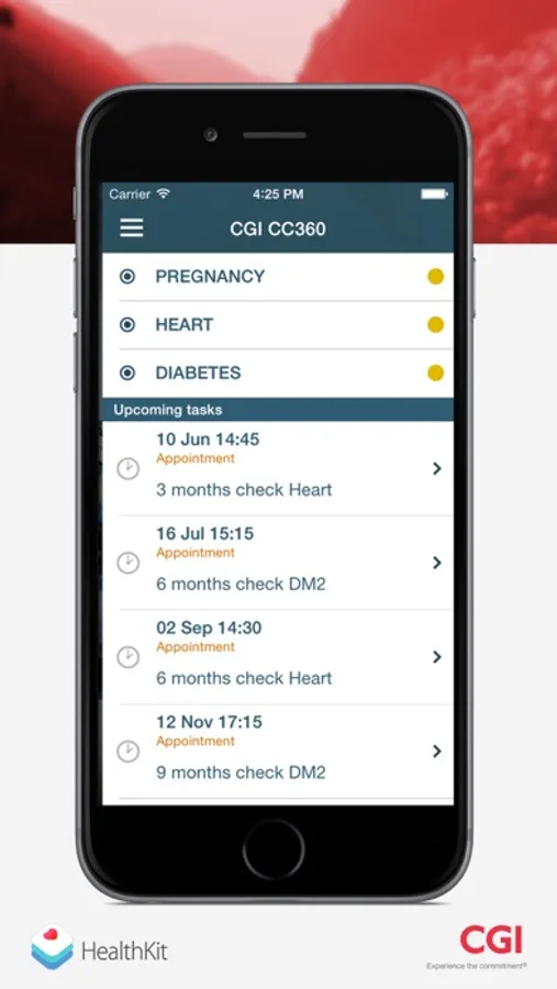 CGI CC360HC is a solution that takes care to the palm of your hand, with exact information you need to take decisions. CGI CC360HC is a mobile health platform empowering citizens with long term conditions to monitor their personal health data. The solution supports cross provider care keeping the citizen into center and allows customizations for an individual citizen. CC360 app integrates with the HealthKit app. They can submit measurements using HealthKit enabled devices. By using the Health app, data is fetched to access the current measurement data and also use the system to communicate with the patient directly through email messaging or video call within this app. Data registered by citizens is available to professionals and caretakers in realtime. The app supports involvement of the family and community in the care of citizens.